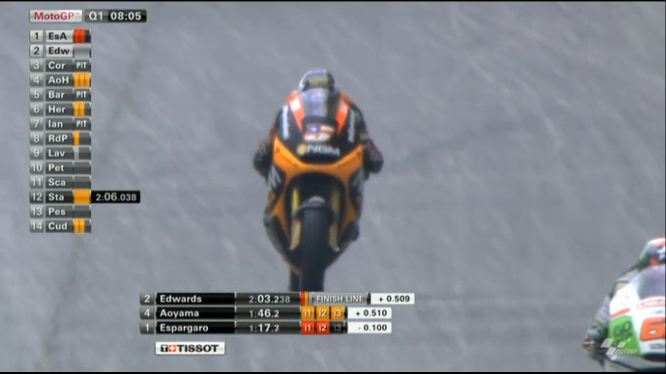 As I noted on Twitter though, the big gulf between Dorna and FOM comes with their graphics. Dorna’s graphics are head and shoulders above FOM. Whilst I praised FOM a few weeks back, their basic graphics set needs improvement. For the purposes of this post, I am only looking at the Qualifying sessions as I admit that is what made me tweet this morning.