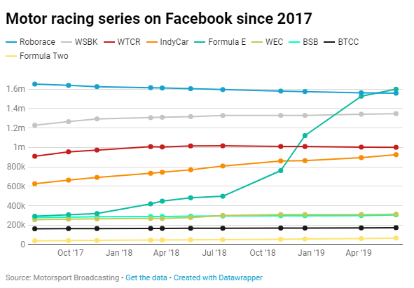 The series on the move from a percentage perspective is Formula E, having grown its social media following by 160 percent since the middle of 2018. From 893,000 followers last Summer, the championship now has 2.33 million followers, a staggering growth for the electric series.