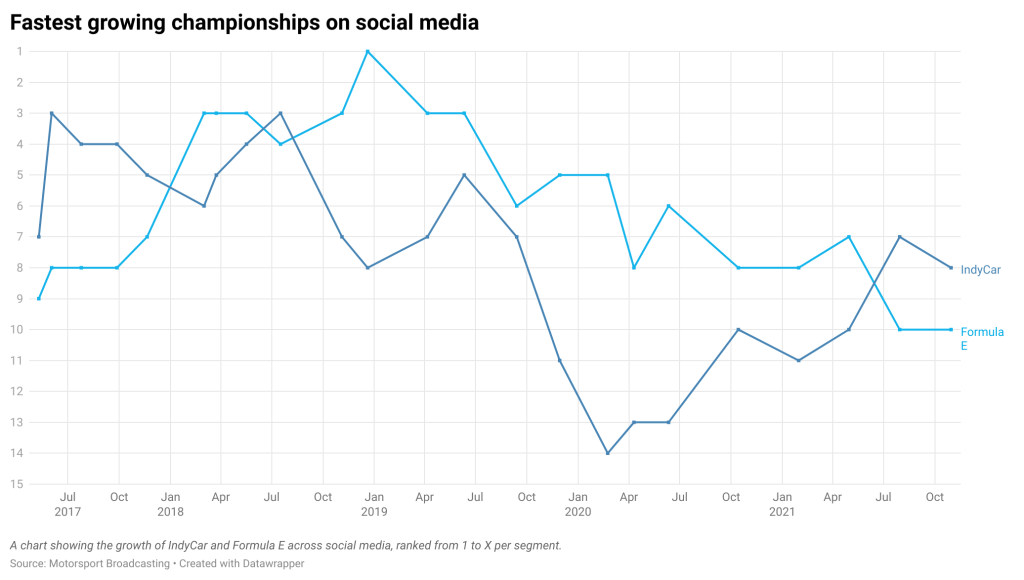 This makes it more difficult for both IndyCar and Formula E to stand out from the crowd, with Formula Two now on the social scene. 2022 is critical for the latter, who have now fallen behind the likes of the World Endurance Championship on social media.